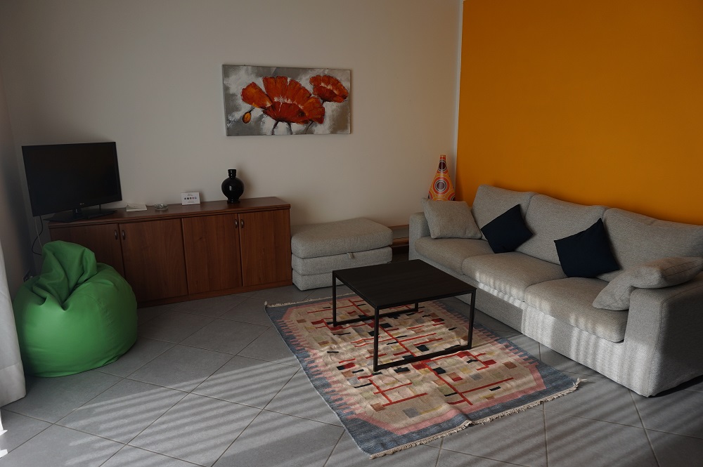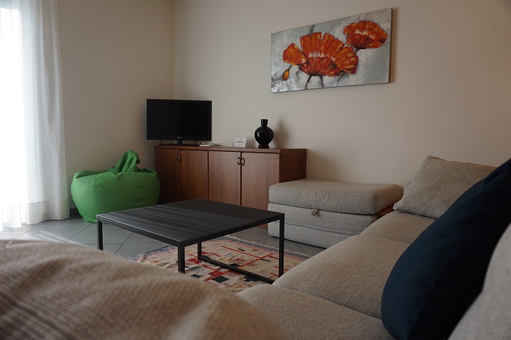 Dispone di ampio soggiorno con divano letto per una persona, un bagno e due camere con letto matrimoniale oppure due letti separati, ampio armadio e cassaforte a muro.